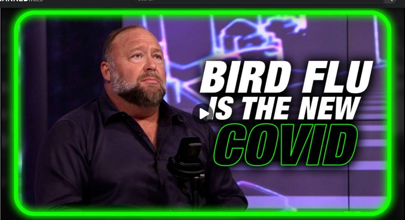 During his Thursday show, Alex Jones covered the breaking news that bird flu is being billed as the next Covid hysteria, just in time for the 2024 election cycle.